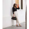 Calça cintura alta confeccionada em linho premium e modelagem reta , possui shape larguinho e fechamento frotal em ziper e botão. Possui passantes para cinto e acompanha um belissimo cinto com fivela dourada.